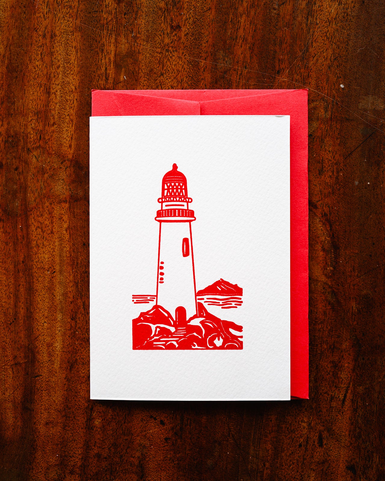 A Set of 5 Letterpress greeting cards featuring a light house from our vintage printing blocks.
